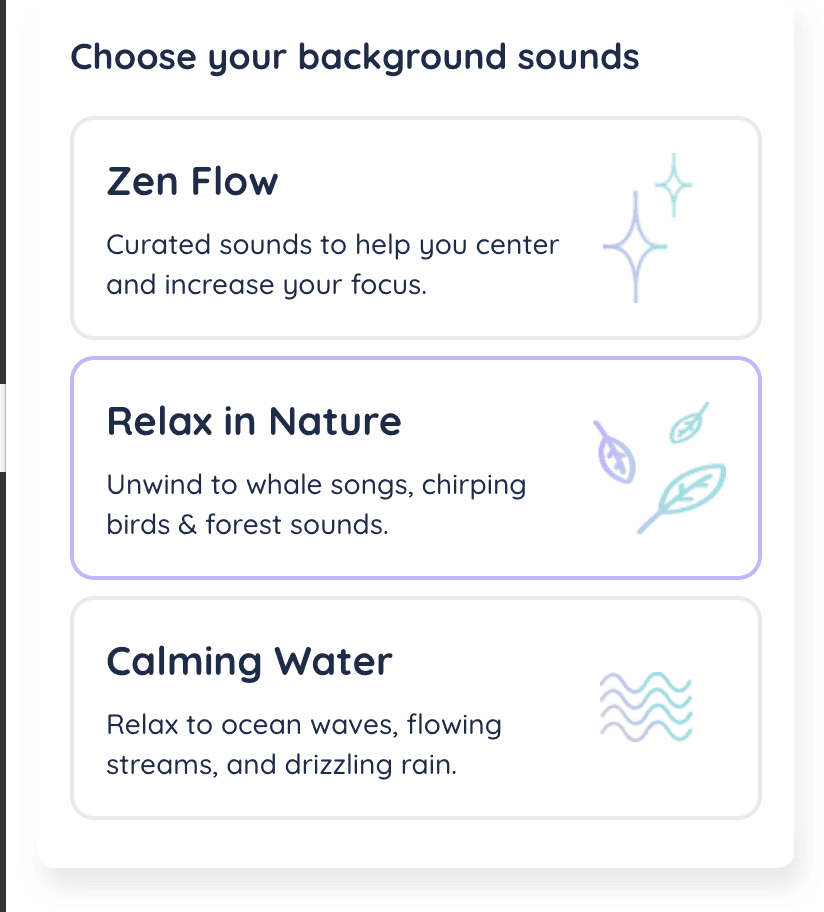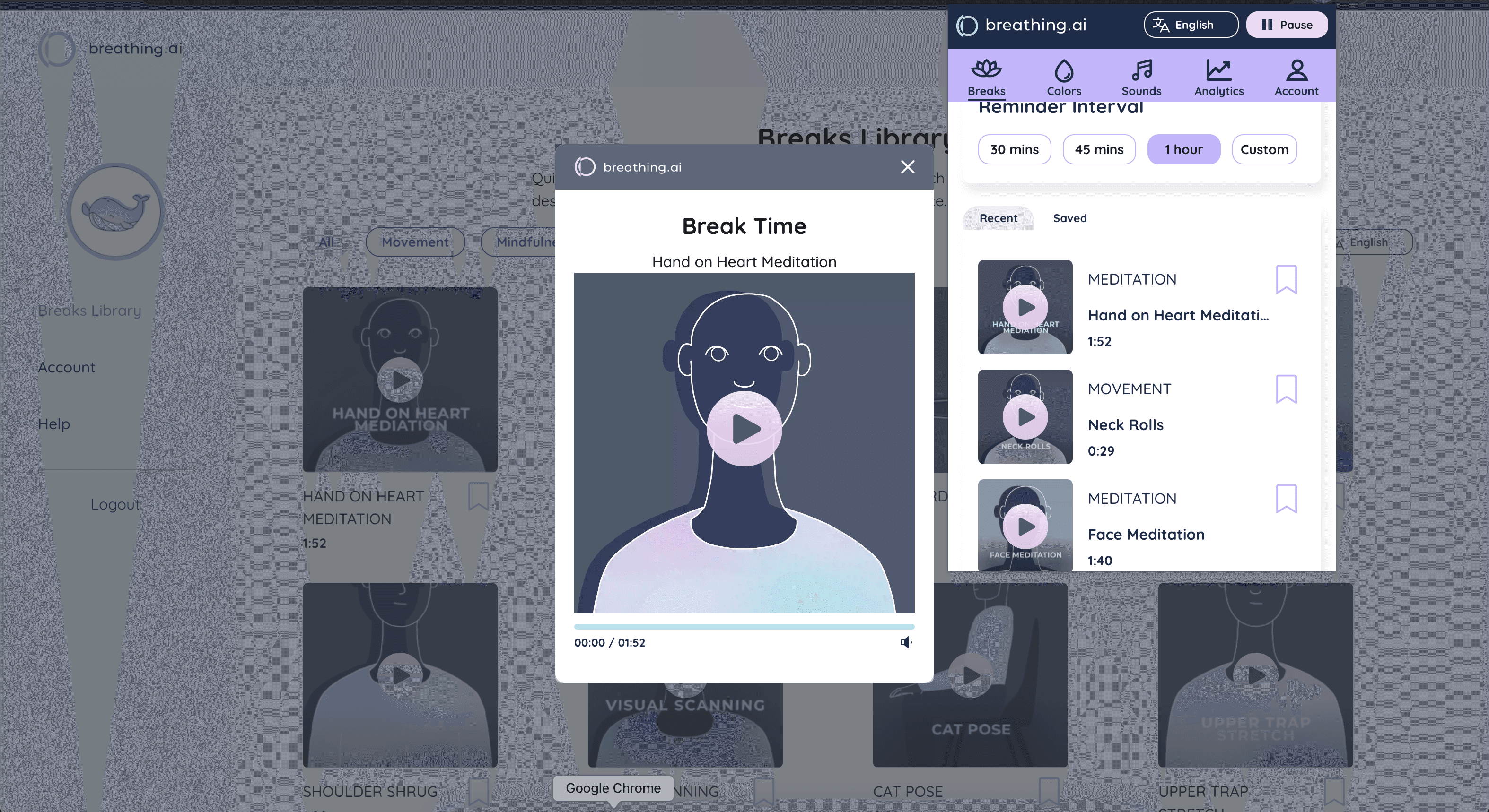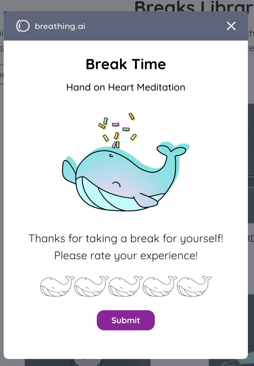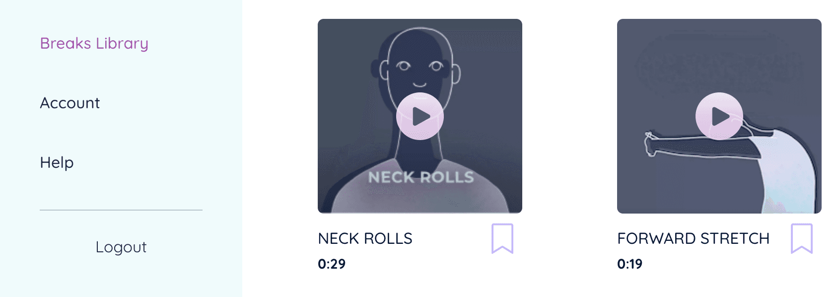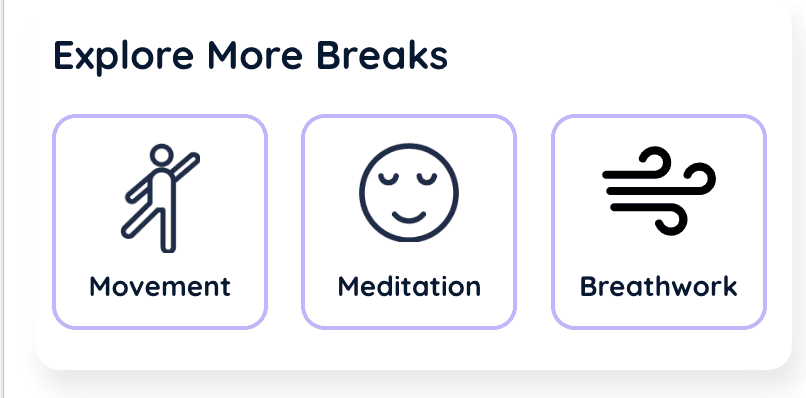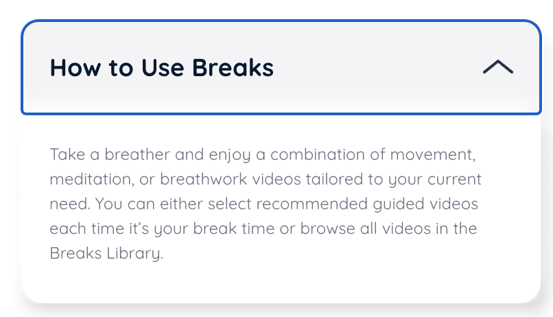 I am confused the language “break” in many places: Take a break or Break reminder. Base on my experience in using other relax apps, take a break from work means drink water, stand up, close your eyes but not do exercise.